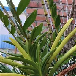 大序隔距兰 Garay):茎直立,扁圆柱形,伸长,达20余厘米,通常粗5-8毫米,被叶鞘所包,…