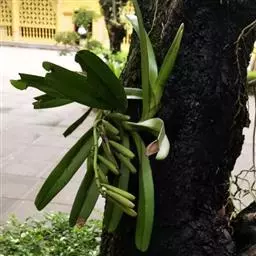大叶隔距兰 Garay):茎直立,粗壮,长5-20厘米,连同叶鞘粗2-2.5厘米,具分枝、长而粗壮…
