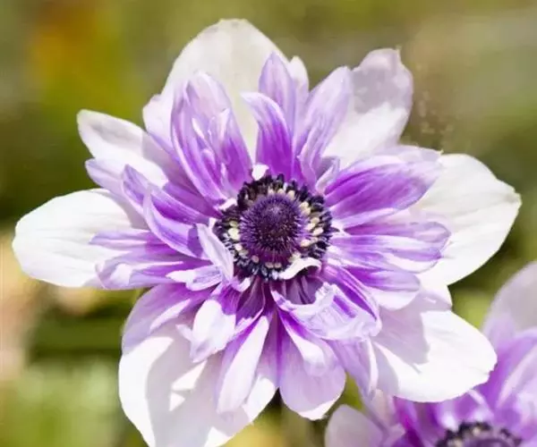 欧洲银莲花是银莲花属中花朵最大的,花茎自叶丛中抽出,有7-28 枝,自基生叶的中心逐渐抽出,抽茎时苞片呈倒钩状,茎粗0.3-0.8厘米,直立中空,长15-65厘米,花葶直立,聚伞花序,有花;苞片形成总苞,与基生叶相似,花单生于茎顶,花径7-13厘米。其黑色或绿色的中心被杯状花瓣包围,花的颜色从白色、黄色、红色、紫色、粉红色、蓝色、腮红色到红色、紫罗兰色、勃艮第酒红色,近乎黑色等单色或复色。有些有一排或更多排的花瓣,通常有50个茎卷。苞片数个,对生或轮生,形成总苞,与基生叶相似,或小,掌状分裂,有柄。通常中等大。萼片5至多数,花瓣状。雄蕊通常多数,花丝丝形,子房有1颗下垂的胚珠。心皮多数或少数,子房有毛或无毛,有1颗下垂的胚珠,花柱存在或不存在,柱头组织生花柱腹面或形成明显的球状柱头。