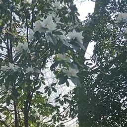 白兰(学名:Michelia alba DC.):常绿乔木,高达17米,枝广展,呈阔伞形树冠;胸径30厘米;树皮灰色;揉枝叶有芳香;嫩枝及芽密被淡黄白色微柔毛,老时毛渐脱落。叶薄革质,长椭圆形或披针状椭圆形,上面无毛,下面疏生微柔毛,干时两面网脉均很明显。花白色,极香;花被片10片,披针形;雌蕊心皮多数,成熟时随着花托的延伸,形成蓇葖疏生的聚合果;蓇葖熟时鲜红色。花期4-9月,夏季盛开,通常不结实。