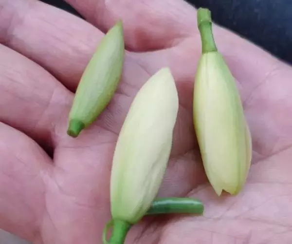 花白色,极香;花被片10片,披针形,长3-4厘米,宽3-5毫米;雄蕊的药隔伸出长尖头;雌蕊群被微柔毛,雌蕊群柄长约4毫米,心皮多数,通常部分不发育,成熟时随着花托的延伸,形成蓇葖疏生的聚合果;蓇葖熟时鲜红色。花期4-9月,夏季盛开,通常不结实。