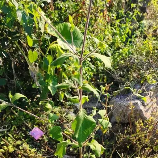 一年生草本。茎直立,粗壮,高30-110厘米,上部多分枝,被开展的灰白色长柔毛和糙毛。