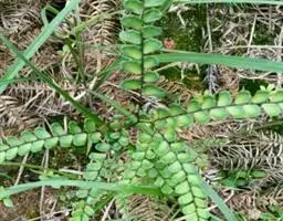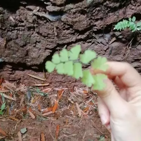 团羽铁线蕨 陆生中小形蕨类,体形变异很大。根状茎或短而直立或细长横走,具管状中柱, 植株高8-15厘米。根状茎短而直立,被褐色披针形鳞片。叶簇生;柄长2-6厘米,粗约0.5厘米,纤细如铁丝,深栗色,有光泽,基部被同样的鳞片,向上光滑;叶片披针形,长8-15厘米,宽2.5-3.5厘米,奇数一回羽状;羽片4-8对,下部的对生,上部的近对生,斜向上,具明显的柄,(长约3厘米),柄端具关节,羽片干后易从柄端脱落而柄宿存,两对羽片相距1.5-2厘米,彼此疏离,下部数对羽片大小几相等,长11-1.6厘米,宽1.5-2厘米,团扇形或近圆形,基部对称,圆楔形或圆形,两侧全缘,上缘圆形,能育羽片具2-5个浅缺刻,不育部分具细齿牙;不育羽片上缘具细齿牙;上部羽片、顶生羽片均与下部羽片同形而略小。叶脉多回二歧分叉,直达叶边,两面均明显。叶干后膜质,草绿色,两面均无毛;羽轴及羽柄均为栗色,有光泽,叶轴先端常延伸成鞭状,能着地生根,行无性繁殖。
