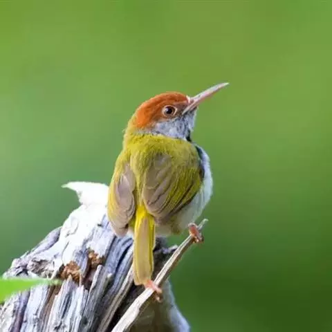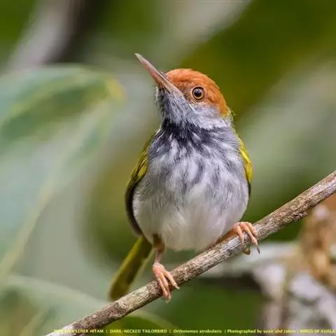 黑喉缝叶莺:体长11.5厘米,是一种小型的顶冠棕色、腹部白色的莺。尾甚长而常上翘,臀黄色,…
