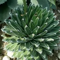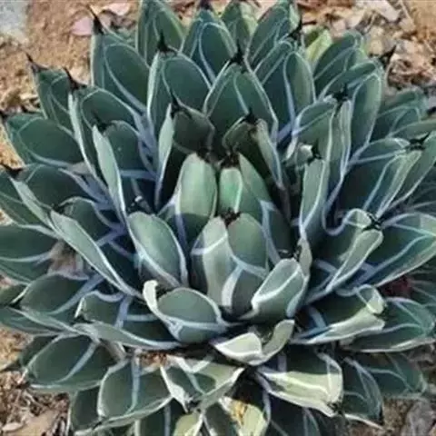 皇后龙舌兰是天门冬科、龙舌兰属多年生草本多浆植物。无主茎,叶丛生,莲座状,株幅40厘米。叶较多,…