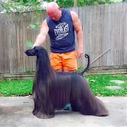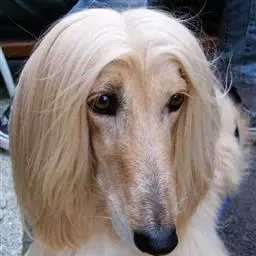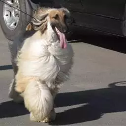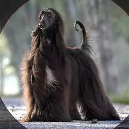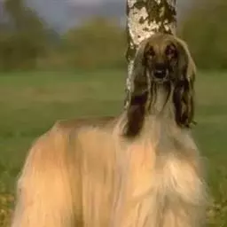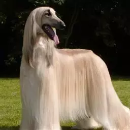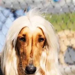 阿富汗猎犬全身披丝绢状的长毛,毛色鲜艳,呈多种颜色,背中线附近毛短,…