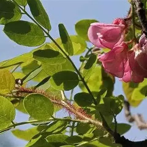 毛洋槐常见的病害有紫纹羽病,此病常至使根部腐烂而树容易被大风刮倒。如果有发生,可于7-8月在树根部撒上草木灰,用量为每株1公斤,然后将土翻起并耙细。毛刺槐还容易罹患白粉病和煤污病,如有白粉病发生,可用15%粉锈宁可湿性粉剂1000倍液进行喷雾,每7天一次,连续喷2-3次可有效控制住病情。如果有煤污病发生,可首先杀灭蚜虫和介壳虫,并用50%多菌灵1000倍液进行喷洒,每7天一次,连续喷3-3次可有效控制住病情。