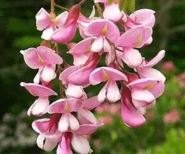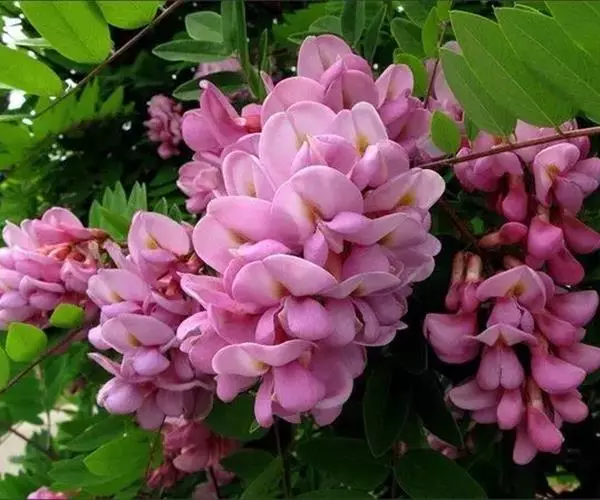 毛洋槐(学名:Robinia hispida L.)是豆科,刺槐属落叶灌木,高1-3米。幼枝密被紫红色硬腺毛及白色曲柔毛,二年生枝密被褐色刚毛,叶轴被刚毛及白色短曲柔毛,上有沟槽,小叶5-7(-8)对,椭圆形、卵形、阔卵形至近圆形。总状花序腋生,花3-8朵,苞片卵状披针形,花萼紫红色,斜钟形,花冠红色至玫瑰红色,花瓣具柄,旗瓣近肾形。雄蕊二体,花药椭圆形,子房近圆柱形,密布腺状突起,沿缝线微被柔毛,柱头顶生,胚珠多数,荚果线形,果颈短,有种子3-5粒。花期5-6月,果期7-10月。