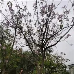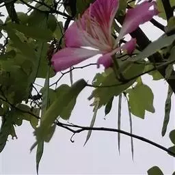 洋紫荆:落叶乔木;树皮暗褐色,近光滑;幼嫩部分常被灰色短柔毛;枝广展,硬而稍呈之字曲折,无毛。叶近…
