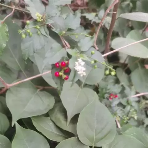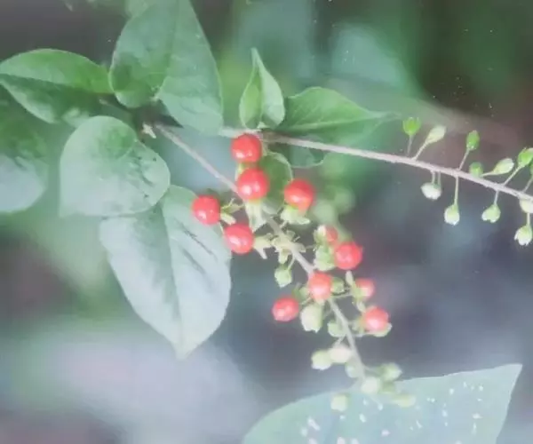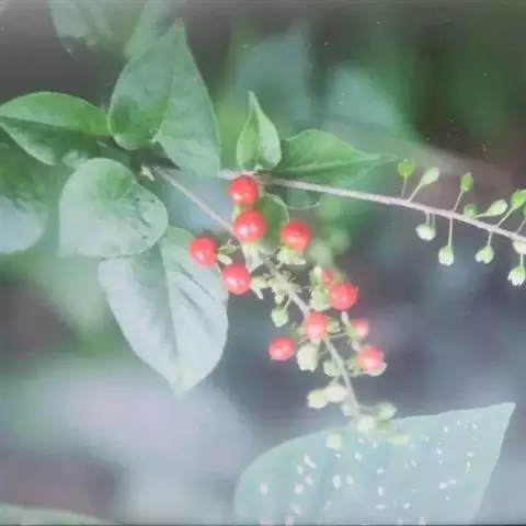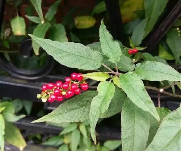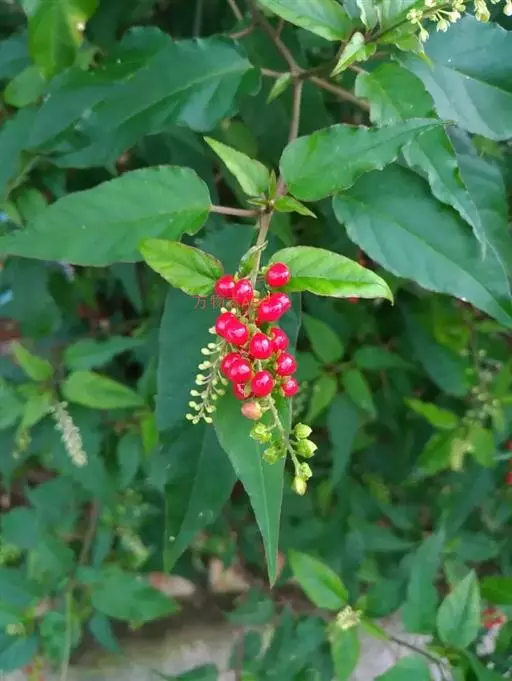 蕾芬,别名数珠珊瑚、小商陆、胭脂草, 半灌木,高30-100厘米。茎直立,枝开展,幼时被短柔毛。