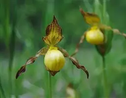 绿花杓兰:植株高30-60厘米,具较粗短的根状茎。茎直立,被短柔毛,基部具数枚鞘,鞘上方具4-5枚叶。…