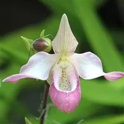 大花杓兰因其形状酷似一个口小肚大的囊袋,又名“大口袋兰”。花体呈紫红色,花朵直径5厘米至6厘米,…