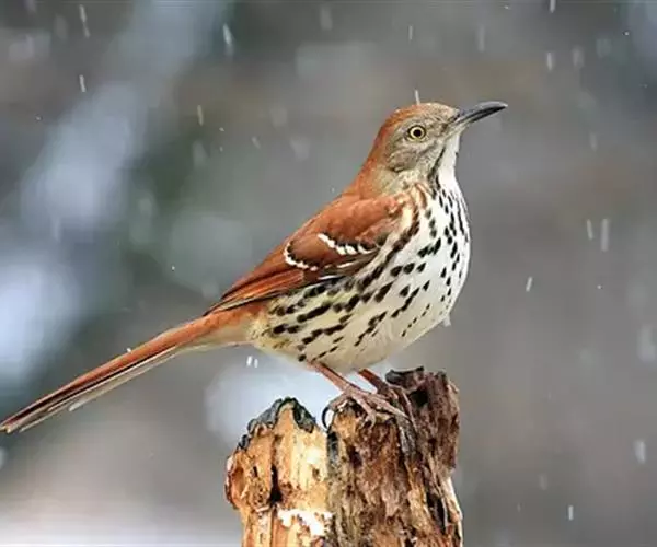 褐弯嘴嘲鸫,脊索动物门、鸟纲、雀形目、嘲鸫科、弯嘴嘲鸫属,分布于北美地区,包括美国、加拿大、格陵兰…