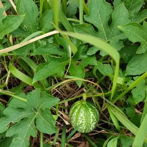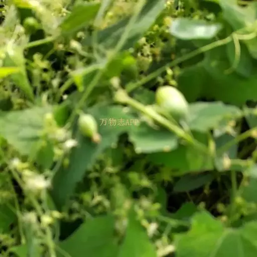 盒子草(果、种子) 一年生柔弱草本;枝纤细,疏被长柔毛,后变无毛。叶柄细,长2-6厘米,被短柔毛;叶形变异大,心状戟形、心状狭卵形或披针状三角形,不分裂或3-5裂或仅在基部分裂,边缘波状或具小圆齿或具疏齿,基部弯缺半圆形、长圆形、深心形,裂片顶端狭三角形,先端稍钝或渐尖,顶端有小尖头,两面具疏散疣状凸起,长3-12厘米,宽2-8厘米。卷须细,2歧。雄花总状,有时圆锥状,小花序基部具长6毫米的叶状3裂总苞片,罕1-3花生于短缩的总梗上。花序轴细弱,长1-13厘米,被短柔毛;苞片线形,长约3毫米,密被短柔毛,长3-12毫米;花萼裂片线状披针形,边缘有疏小齿,长2-3毫米,宽0.5-1毫米;花冠裂片披针形,先端尾状钻形,具1脉或稀3脉,疏生短柔毛,长3-7毫米,宽1-1.5毫米;雄蕊5,花丝被柔毛或无毛,长0.5毫米,花药长0.3毫米,药隔稍伸出于花药成乳头状。雌花单生,双生或雌雄同序;雌花梗具关节,长4-8厘米,花萼和花冠同雄花;子房卵状,有疣状凸起。果实绿色,卵形,阔卵形,长圆状椭圆形,长1.6-2.5厘米,径1-2厘米,疏生暗绿色鳞片状凸起,自近中部盖裂,果盖锥形,具种子2-4枚。种子表面有不规则雕纹,长11-13毫米,宽8-9毫米,厚3-4毫米。花期7-9月,果期9-11月。