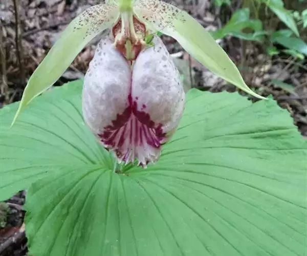大花杓兰因其形状酷似一个口小肚大的囊袋,又名“大口袋兰”。花体呈紫红色,花朵直径5厘米至6厘米,…