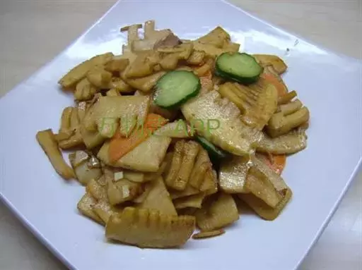 杏鲍菇炒西兰花 杏鲍菇1根、西兰花150克、黑木耳150克、胡萝卜80克、姜10克、盐3克、素蠔油10毫升