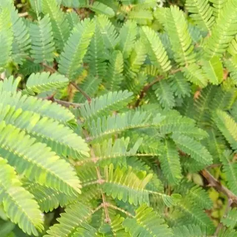 巴西含羞草(学名:Mimosa diplotricha C. Wright)是豆科、含羞草属植物。直立、亚灌木状草本;茎攀援或平卧,长达60厘米,五棱柱状。复叶长10-15厘米;总叶柄及叶轴有钩刺;羽片长2-4厘米;小叶线状长圆形,被白色长柔毛。花紫红色,花萼极小;花冠钟状,外面稍被毛;子房圆柱状,花柱细长。荚果长圆形,边缘及荚节有刺毛。花果期3-9月。