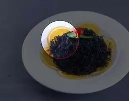 【调料】:竹盐、松茸、橄榄油。原料:球茎茴香半个,孢子甘蓝50克,甜脆豆20克,西芹50克,紫叶生10克,红、黄西红柿20克。