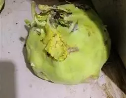 亦作球茎甘蓝,属十字花科,切去底部硬底,削皮,露出的白色部分就是肉;它的味道有点苦,像芥兰;凡属十字花科植物皆有十分强的抗癌防癌物质,而丕蓝因有硬皮在外,更不怕农药残留,不像西兰花、椰菜花叫人怕,可放心食用。