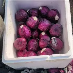 【大叶芥蓝头】:原天津市郊区地方品种。植株生长势较强。叶片长圆形,叶多而密,叶片厚而大,深绿色,有蜡粉。球茎扁圆形,皮青绿色,具蜡粉,皮较粗厚坚硬,肉质纤维多,品质较差,主要用于加工。该品种特点是晚熟,耐热,丰产,耐贮运。从定植到收获约120天。单株球茎重可达1~1.25公斤。结球甘蓝因其叶球形状和成熟期各有不同,一般可以分为尖头类型、圆头类型和平头类型等三种叶球形状;熟性上还可分为早熟类型、中熟类型和晚熟类型等三种。