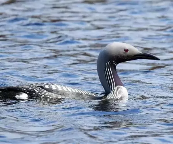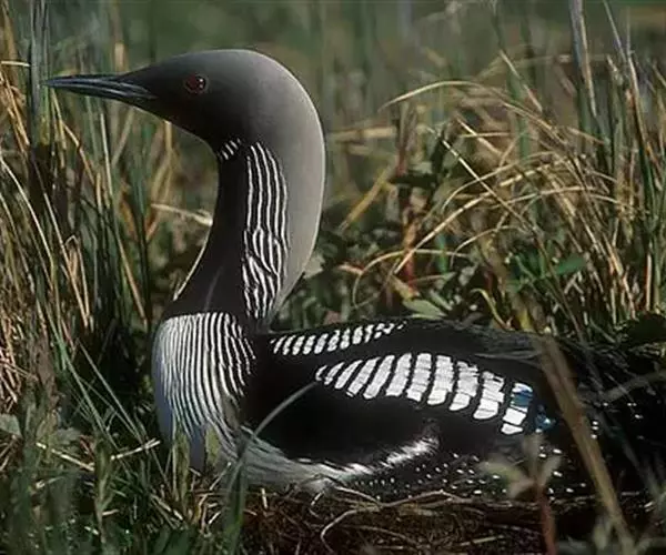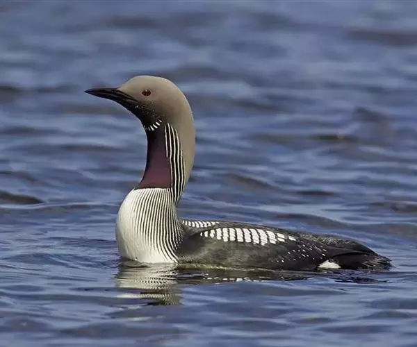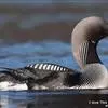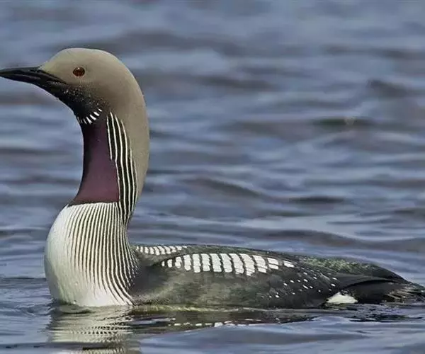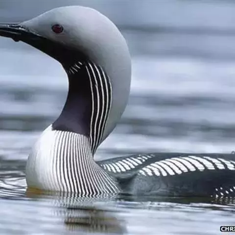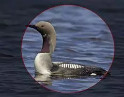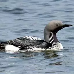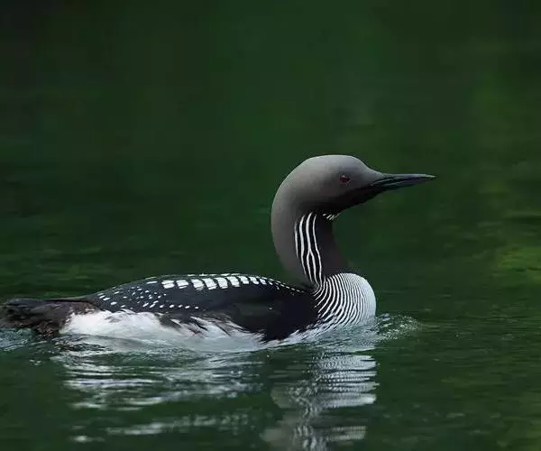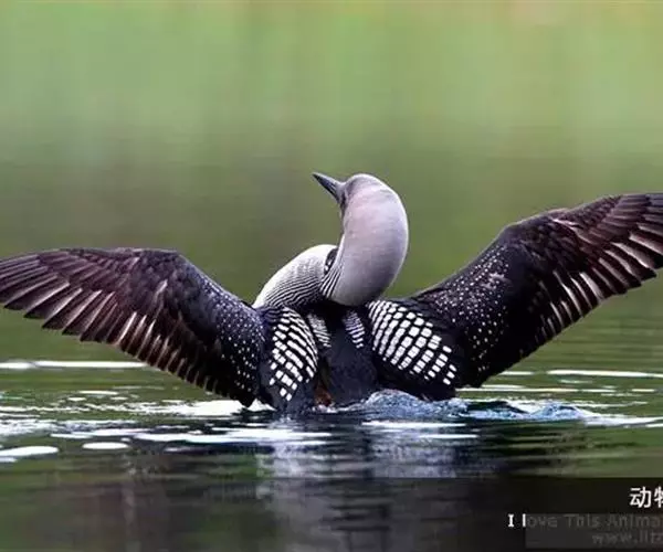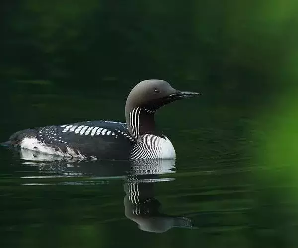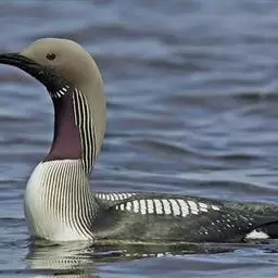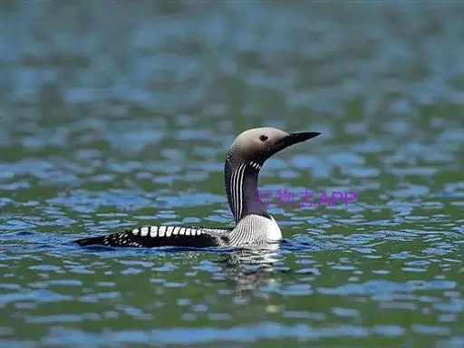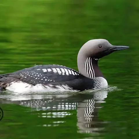 黑喉潜鸟(学名:Gavia arctica)为潜鸟目下的大型水禽,体长56-75厘米,体重雄性3.3-3.8千克,雌性2-3.1千克。个体较红喉潜鸟大,嘴直,颈粗而长,常弯曲成优美的S型。夏羽头顶至后颈灰色;喉及前颈黑色而具绿色金属光泽;颈侧有白色纵纹,下喉具白色斑点组成的横带;背黑色,具长方形白色横斑,两翼具白色细斑点;下体白色,胸侧有黑色细纵纹。冬羽从前额至后颈黑色;颏、喉至前颈白色;胸侧有黑褐色纵纹;两胁有黑斑,后胁白色明显可见。
