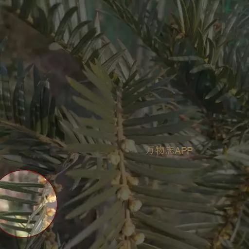 雄球花6-7聚生成头状,径约6毫米,总梗长约3毫米,基部及总梗上有多数苞片,雄球花卵圆形,基部有1枚苞片,雄蕊4-11枚,花丝短,花药2-4(多为3)个。种子通常2-5个着生于轴上,卵圆形、椭圆状卵形或近球形,很少成倒卵状椭圆形,长1.8-2.5厘米,顶端中央有一小尖头。花期3-4月,种子8-10月成熟。