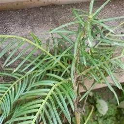 粗榧 灌木或小乔木,高达15米,少为大乔木;树皮灰色或灰褐色,裂成薄片状脱落。叶条形,排列成两列,通常直,稀微弯,长2-5厘米,宽约3毫米,基部近圆形,几无柄,上部通常与中下部等宽或微窄,先端通常渐尖或微凸尖,稀凸尖,上面深绿色,中脉明显,下面有2条白色气孔带,较绿色边带宽2-4倍。