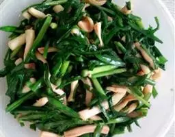 清炒豆苗方法二:豌豆苗500克,精盐2.5克,味精2克,素油75克。豆苗摘除老叶洗净,沥去水。炒锅置旺火上,加油烧至七成热,将豆苗、盐、味精同时下锅,一边用筷子拨动,一边转动颠翻炒锅,快速炒至嫩熟出锅即成。