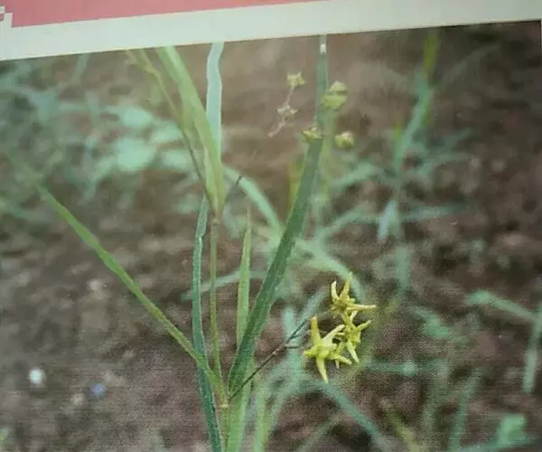 《救荒本草》,卷上,草部,“尖刀儿苗”:“生密县梁家衡山野中,苗高二三尺,叶似细柳叶,更又细长而尖,叶皆两两插茎而生,叶间开淡黄花,细尖角儿,长二寸许,麄如萝卜,角中有白穰及小匾黑子。其叶味甘,采叶煠熟,水洗淘净,油盐调食。”根据上述描写和原书的图形,十分可能就是本种植物。