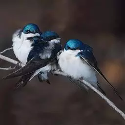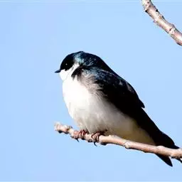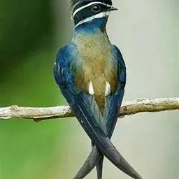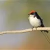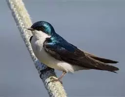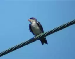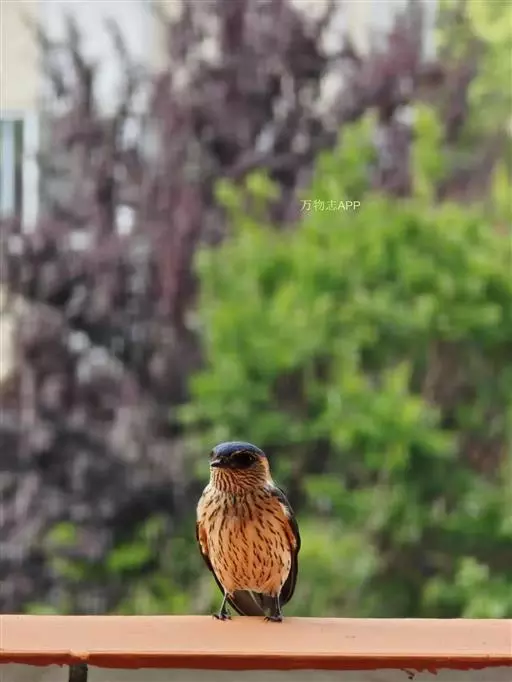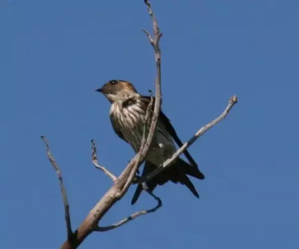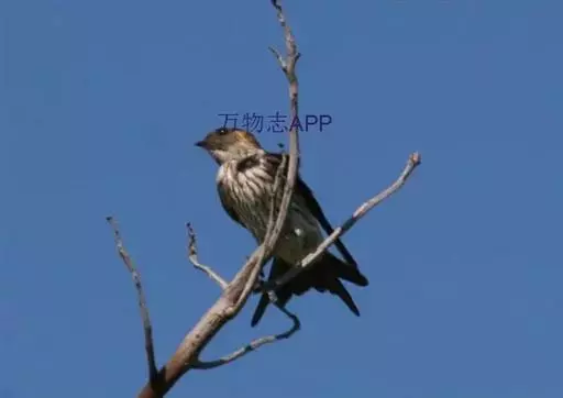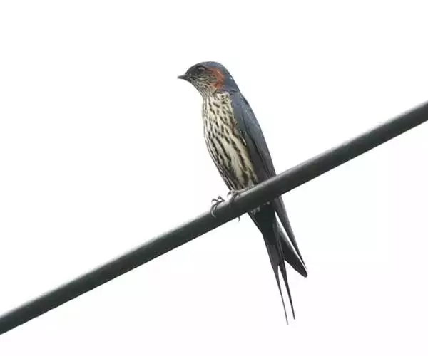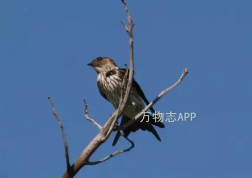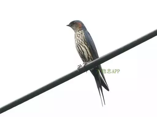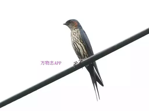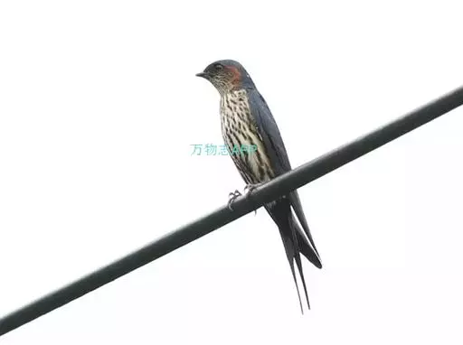 线尾燕,腹部接近纯白色,背部则为深紫色,头部的羽毛是栗色的。