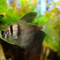 黑裙鱼属脂鲤科,原产南美洲亚马逊河流域、巴西、乌拉圭、玻利维亚及阿根廷等地。黑裙鱼在自然界中长约6-8厘米,水族箱养殖的一般长约3-6厘米,体高,侧扁,近似菱形。臀鳍宽大,脂鳍较小,胸鳍、腹鳍、尾鳍均为白色。
