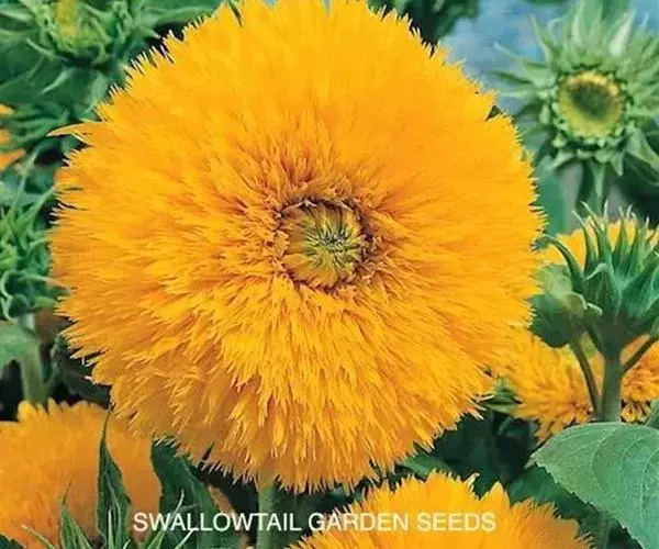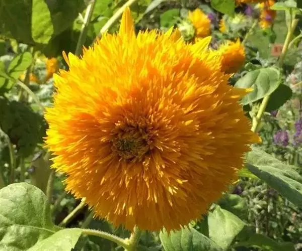 千瓣葵(Helianthus decapetalus Linn.),又名矮生葵花,为菊目向日葵属植物。一年生草本植物,株高30~50cm,叶互生,宽卵形,先端尖,基部心形,头状花序单生于茎顶,重瓣花金黄色,花期7~9月,瘦果灰色或黑色,果熟期9~10月。千瓣葵喜温暖向阳环境,不耐寒,宜于深厚肥沃砂壤土生长,原产北美,现世界各国广为栽培。园林中千瓣葵多用于庭院绿化、布置花坛,也可盆栽观赏。