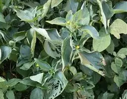 打杈、打叶:在花盘形成期,有些品种,在茎秆中、上部常发生分枝现象,要及时除掉,使营养集中在主茎花盘上,保证籽粒饱满充实。打杈工作要及时,做到“枝杈一冒,立即打掉”,此外密度过大,通风透光不良或有徒长现象的地块,应在花授粉后适当打掉部分不太起作用的老叶。