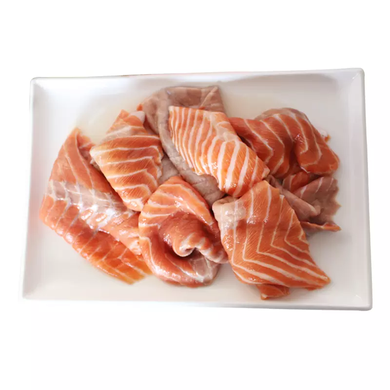 看鱼肉,新鲜的三文鱼肉明亮清新,有光泽,线条清晰,肉质坚实,反之不新鲜。