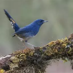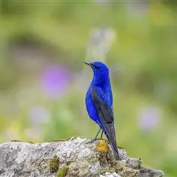蓝大翅鸲是鹟科、大翅鸲属小型鸟类,体长19-21厘米。两翅尖长。雄鸟通体鲜紫蓝色具金属光泽。…