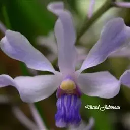小蓝万代兰:兰科,万代兰属附生草本植物。茎长可达8厘米或更长,叶多少肉质,带状斜立,花序近直立,…
