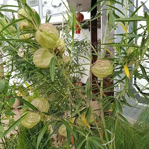 唐棉,株形直立,全株具白色乳汁;叶:线形似柳叶,色浓绿,背面淡绿色,对生;花:繖形花序,腋生,乳白…