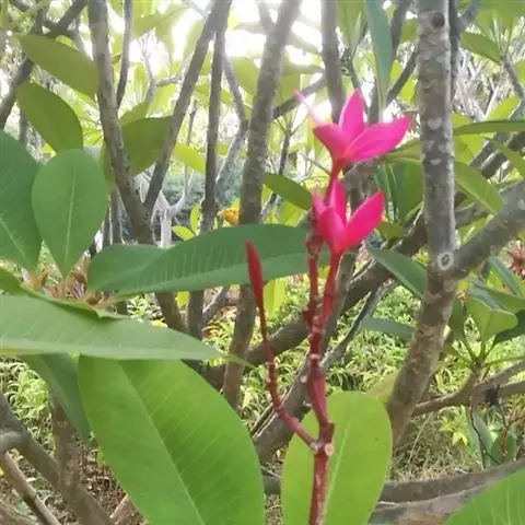 红鸡蛋花,夹竹桃科鸡蛋花属的落叶小乔木。叶形状为椭圆形或窄长椭圆形,长14-30厘米,叶下面呈淡绿色,…
