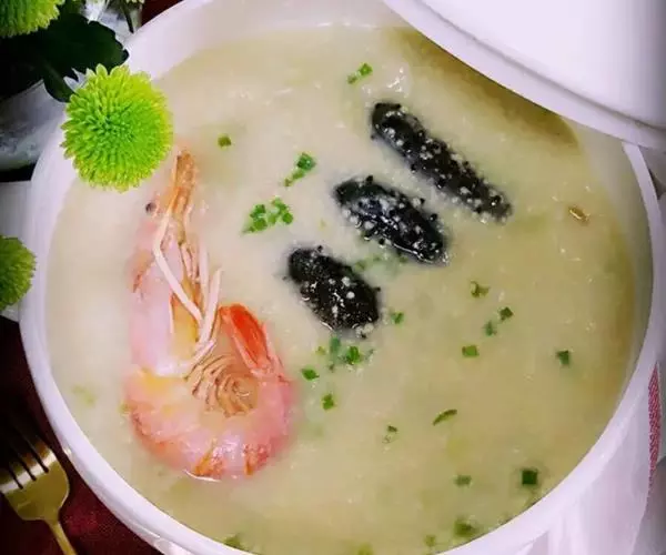 主料:稻米(200克)青鱼(150克)虾仁(150克)鱿鱼(鲜)(100克)海参(水 海鲜粥 浸)(100克)