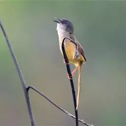 黑喉缝叶莺:体长11.5厘米,是一种小型的顶冠棕色、腹部白色的莺。尾甚长而常上翘,臀黄色,…