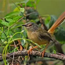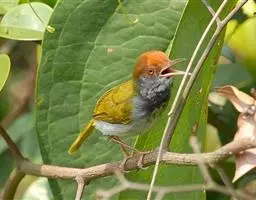 普通缝叶莺(学名:Orthotomus sutorius):体长9-14厘米,是一种体型小的棕顶冠而腹白的莺。尾长而常上扬;额及前顶冠棕色,眼先及头侧近白,后顶冠及颈背偏;背、两翼及尾橄榄绿色,下体白而两胁灰。于繁殖期雄鸟的中央尾羽由于换羽而更显延长。云南亚种的脸颊及耳羽无细纹;华南亚种的上体色深。虹膜浅皮黄色;上嘴黑色,下嘴偏粉色;脚粉灰色。