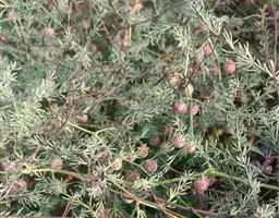 植株具大量丛生茎,多分枝;茎灰白色,基部木质化;小枝纤细,叶呈短松针状,簇生成团,极似五针松叶。新叶嫩绿色,老叶深绿色。花淡红色至白色,有香气,花期7—8月,浆果黑色。