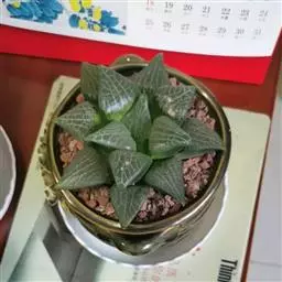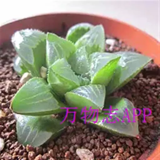 康平寿(Haworthia emelyae var. comptoniana (G.G.Sm.) J.D.Venter & S.A.Hammer)是隶属于阿福花科、瓦苇属的多年生植物,原产南非。多肉植物。植株矮小、无茎。叶短而肥厚,螺旋状生长,呈莲座状排列,半圆柱形,顶端呈水平三角形,截面平而透明,形成特有的「窗」状结构,窗上有明显脉纹。花葶细长,小花白色、筒状。