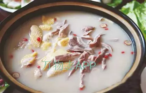 猪肚包鸡 猪肚为猪科动物猪的胃。猪肚含有蛋白质、脂肪、碳水化合物、维生素及钙、磷、铁等,具有补虚损、健脾胃的功效,适用于气血虚损、身体瘦弱者食用。