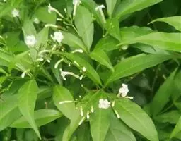 狗牙花 R. Br. ex Roem. & Schult.)是夹竹桃科山辣椒属灌木植物;枝灰绿色;叶椭圆形或椭圆状长圆形,叶面深绿色,背面淡绿色,叶面扁平;花聚伞花序腋生,通常双生,萼片长圆形,边缘有缘毛,花冠白色;果长圆形;花期六至十一月;果期秋季。狗牙花因其花冠裂片边缘有皱纹,状如狗牙,故名。狗牙花原产于印度及中国云南,在广西、广东、台湾及亚洲热带和亚热带等地区广泛栽培。狗牙花喜温暖湿润,不耐寒,宜半阴,对土壤要求不严,喜肥沃、排水良好的酸性土壤,常生长于山地灌木丛中。狗牙花的主要繁殖方式为扦插。狗牙花味酸、凉,有清热降压、解毒消肿的功效,可用于治疗咽喉肿痛,跌打损伤。狗牙花枝叶茂密,株型紧凑,花朵净白素丽,典雅朴质,盛花时十分美观,且花期长,具有一定观赏价值。狗牙花还有较高的经济价值,园林中应用极为普遍,可丛植于林缘、路