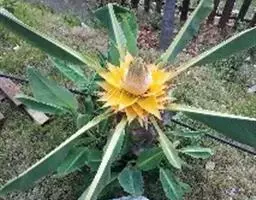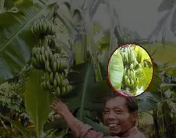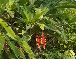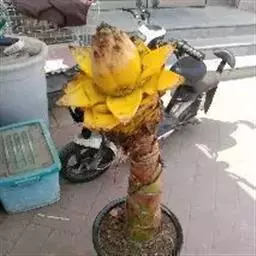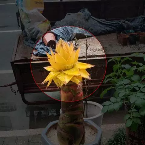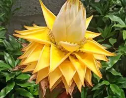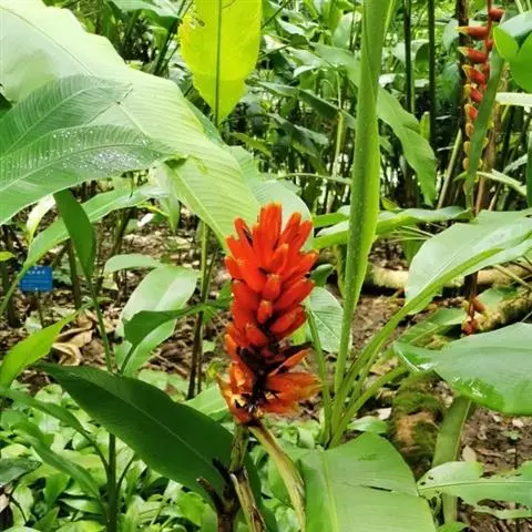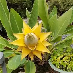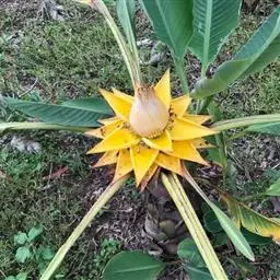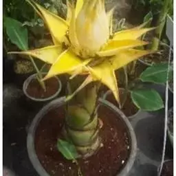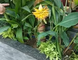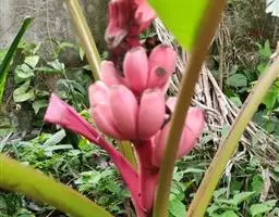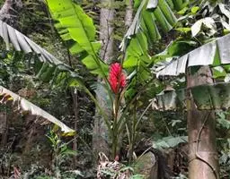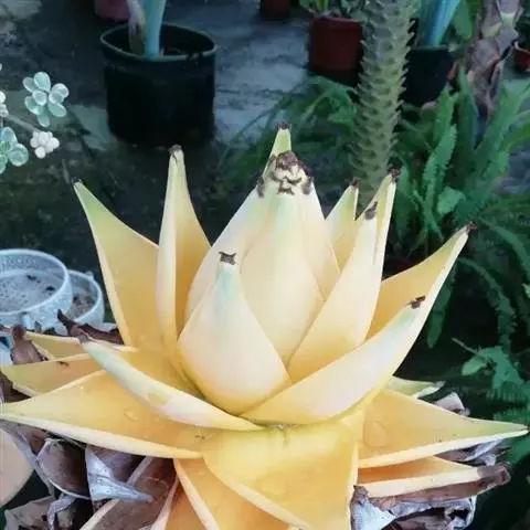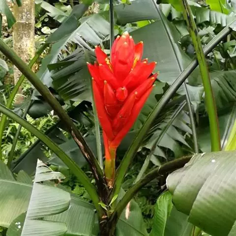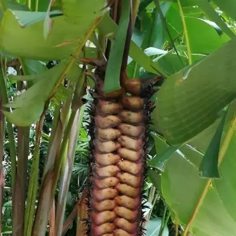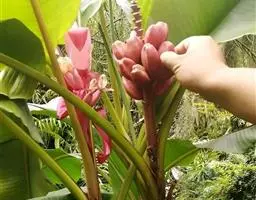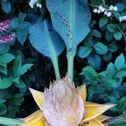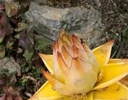 紫苞芭蕉形如一枝亭亭玉立、含苞待放的荷花,但却开在高高的芭蕉树上,这就是紫苞芭蕉。