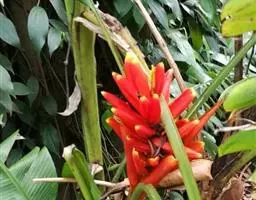金嘴蝎尾蕉:芭蕉科,蝎尾蕉属多年生草本植物。株高可达6米。叶片长圆形,叶面绿色,叶背亮紫色;顶生花…