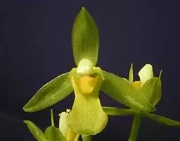 飘带兜兰 Stein)是兰科兜兰属的附生植物,叶基生,叶片宽带形,厚革质,无毛;花葶近直立,绿色,…