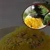 4. 蛋黄入热油锅中划开成小粒,分散在豆腐上,加植物油,然后放入蒸锅,蒸六七分钟即成。