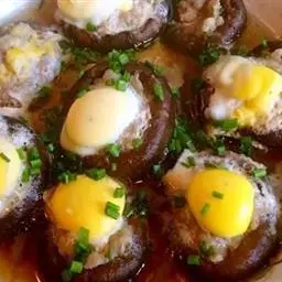 2.将咸蛋黄用刀压扁,放在肉面上,入笼蒸熟,取出,用生抽与二汤调匀,淋上肉面上,即可食用。